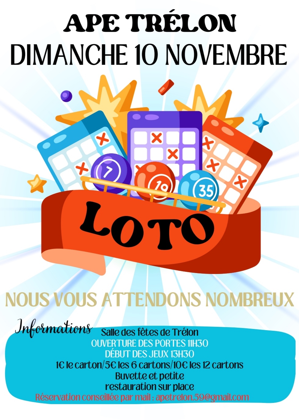 L’association APE TRELON organise son loto le dimanche 10 novembre 2024 à la salle des fêtes de Trélon.