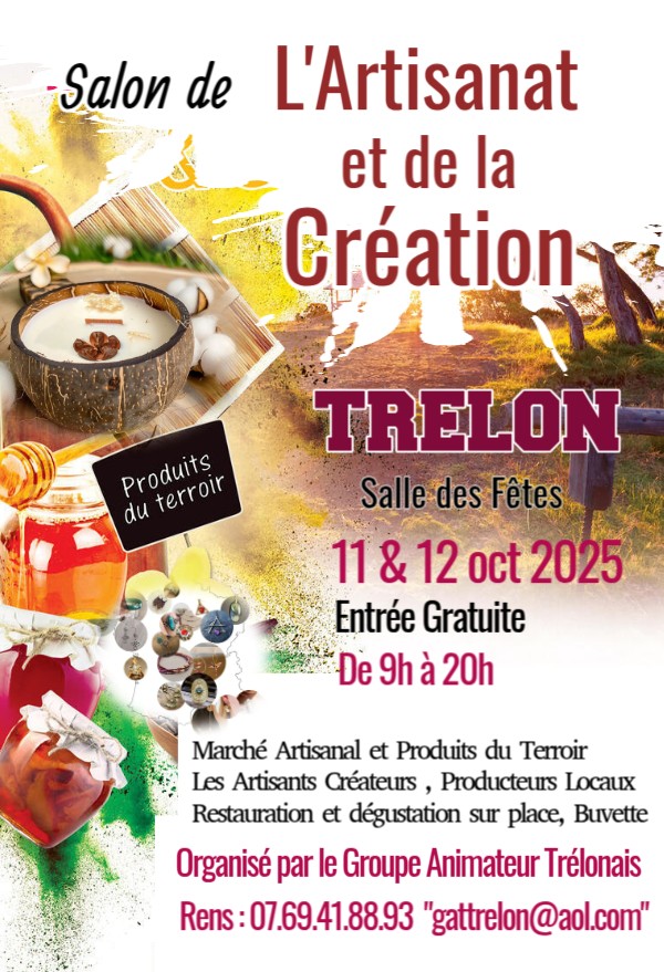 Les animateurs du GAT organisent un salon de l’artisanat et de la création les samedi 11 et dimanche 12 octobre 2025 de 9h00 à 20h00 dans la salle des fêtes.