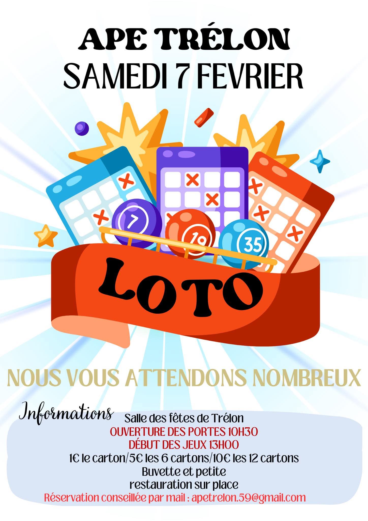 L’APE de Trélon organise son loto le samedi 7 février 2026 à la salle des fêtes de Trélon.