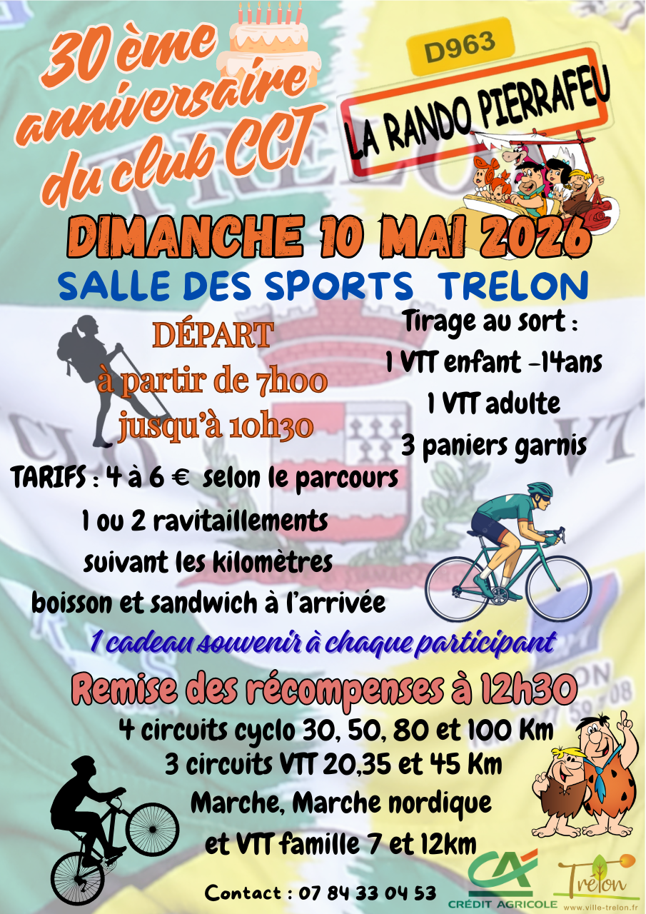 Le Club  Cyclo Trélonais organise son rallye « LA PIERRAFEU » le Dimanche 10 mai 2026 à la salle des sports – Trélon.